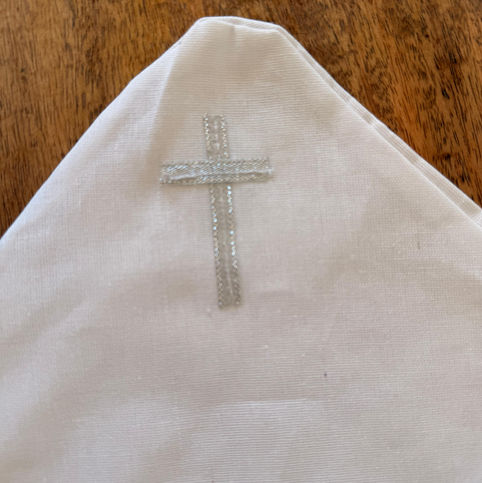 Cotton Christening robe with bonnet and wrap. White cotton fabric with lace detail and embroidered cross. Made in Russia. 2-8 months.
