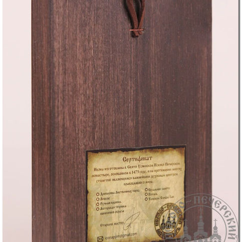 This icon was made in the Holy Dormition Pskov-Pechersky Monastery, founded in 1473, and for many centuries was the most important spiritual center of the Orthodox world.