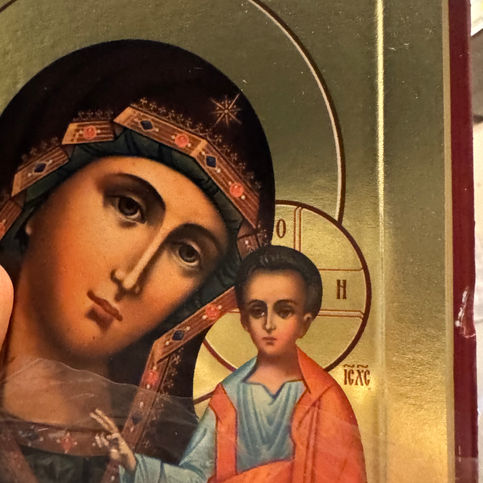 REDUCED Our Lady of Kazan icon of the Mother of God. Silk screen. Gold leaf.