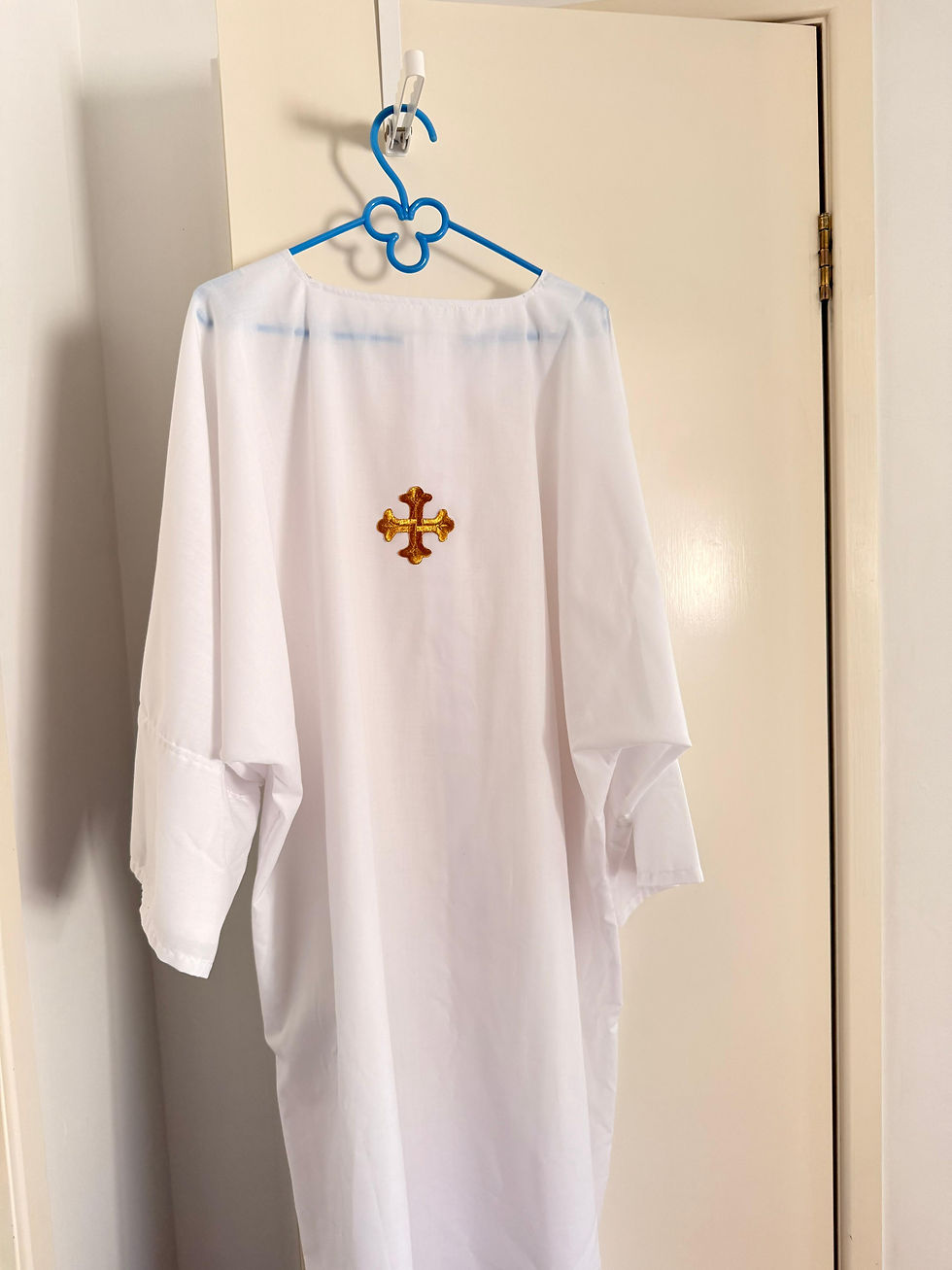 Medium sized silver metal cross. Crucifixion detail on front, “Save and protect” prayer on reverse. All crosses have been blessed.