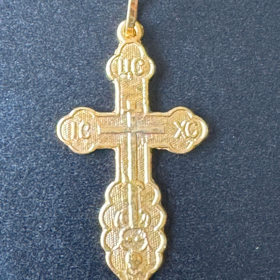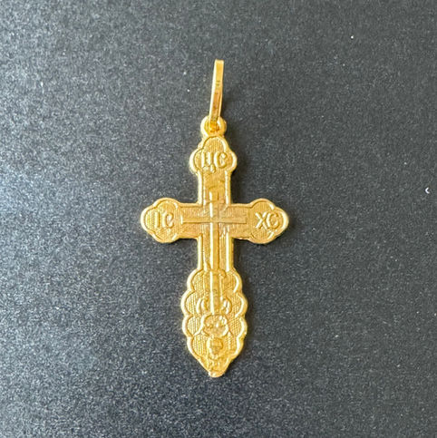 Solid 9 carat gold Orthodox cross. “Save and preserve” on reverse.