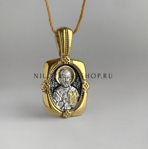 St Nicholas the Wonderworker pendant. Solid, oxidised, sterling silver, 24 carat gold plated pendant.