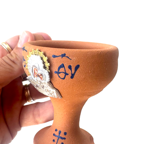 Terracotta incense burner/censer with icon of the Mother of God. Made in Greece.