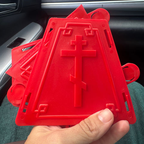 Red plastic Easter mold. From Russia. Comes in 4 pieces.